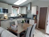 'Our beautiful ‘Goshawk’ lodge sits in a sought after spot on our lovely resort; affording beautiful views to the rolling hills beyond with our nature area nestled behind established hedgerows. Step out of your patio doors to the spacious decking, with sunken Jacuzzi hot-tub and luxury rattan furniture and enjoy being 'at-one' in this beautiful place. Beautifully appointed throughout with every modern convenience.