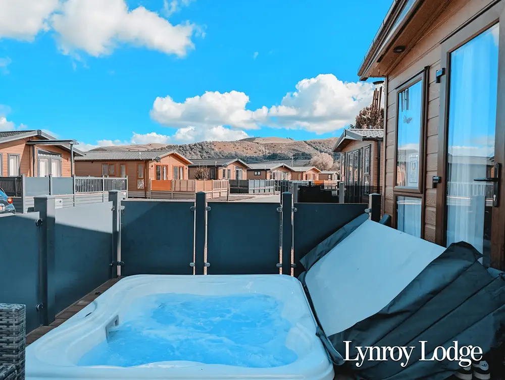- Spacious decking area with private sunken Jacuzzi Hot Tub, rattan patio furniture